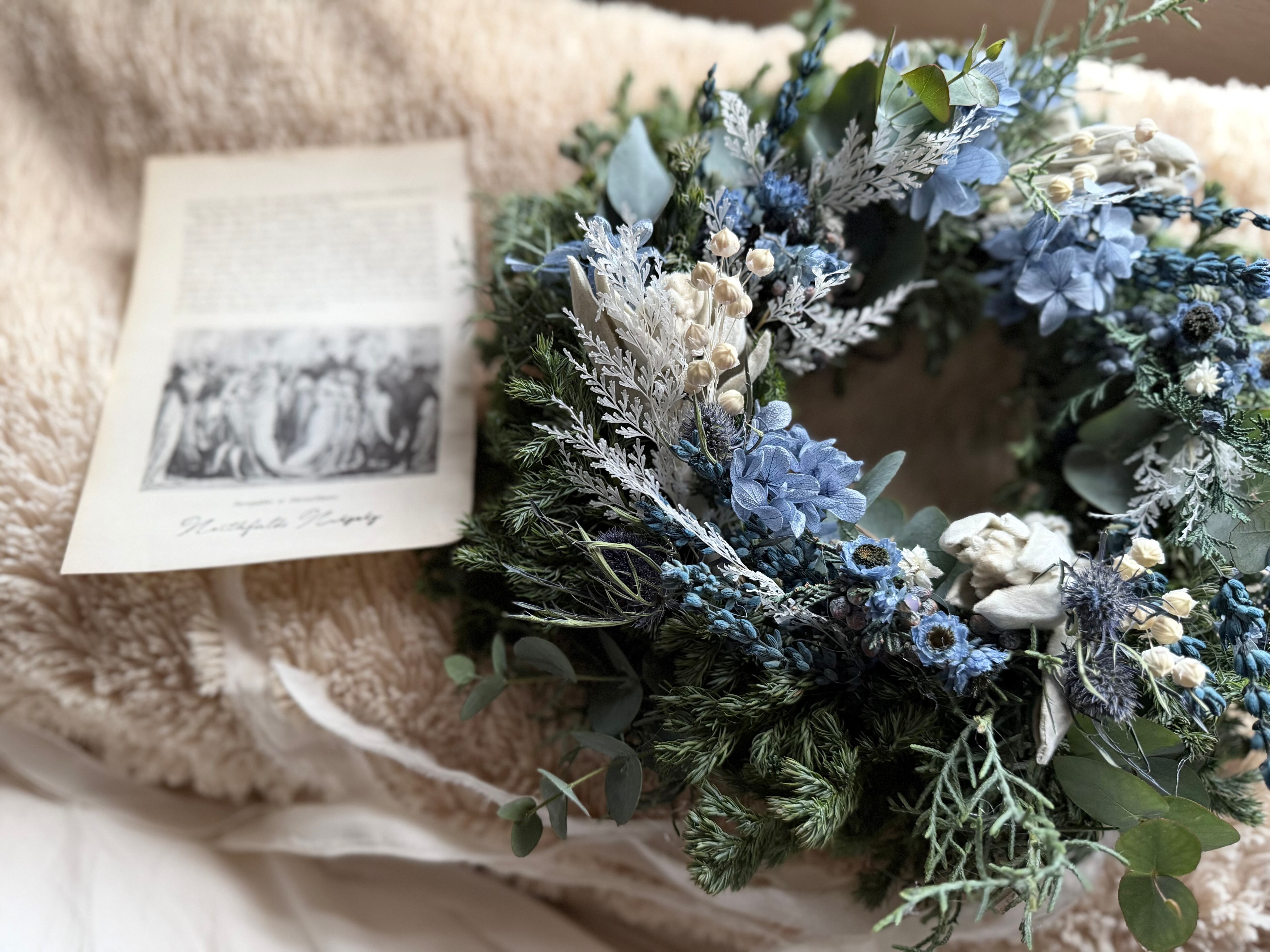 冬のナチュラルリース白系 青系
